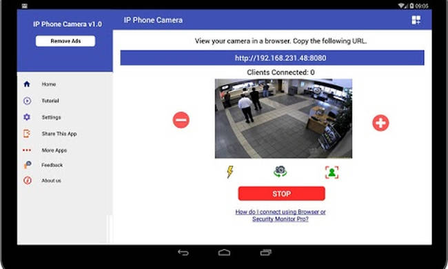 H αρχή λειτουργίας αυτού του setup είναι η εξής: Η συσκευή χρησιμοποιεί την κάμερά της (την οπίσθια) για να «βλέπει» το χώρο. Ταυτόχρονα πρέπει να είναι συνδεδεμένη μέσω Wi-Fi με το router του χώρου, ώστε να «ανεβάζει» αυτό το live feed στο Διαδίκτυο σε πραγματικό χρόνο. Φυσικά, πρόσβαση σε αυτό το feed μπορεί να έχει οποιοσδήποτε χρήστης, αρκεί να έχει την IP address της «κάμερας», την οποία δίνει η εκάστοτε εφαρμογή. Έτσι μπορείτε να δείτε το feed από έναν άλλο υπολογιστή, μακριά από το χώρο αυτό, ή ακόμη και μέσω του κινητού σας.